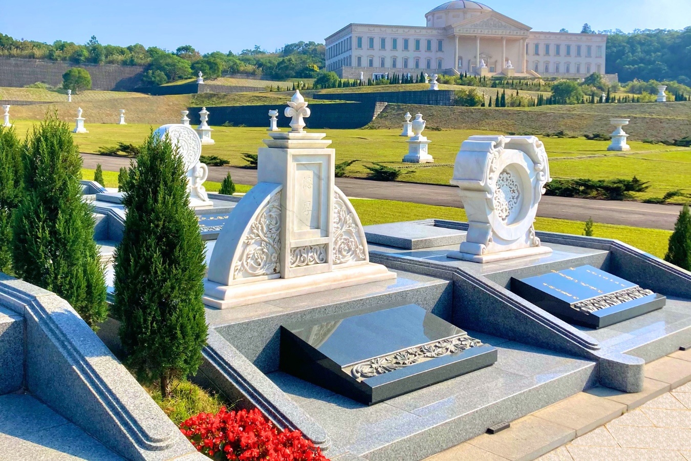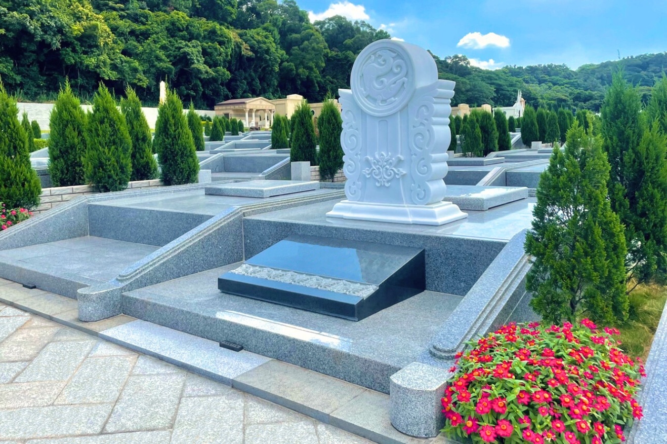 精緻戶外墓園區秉持傳統入土為安的概念,以漢白玉石雕紀念碑搭配花崗岩基座,輔以精美園藝,打造專屬於每位顧客獨一無二的戶外永眠空間。