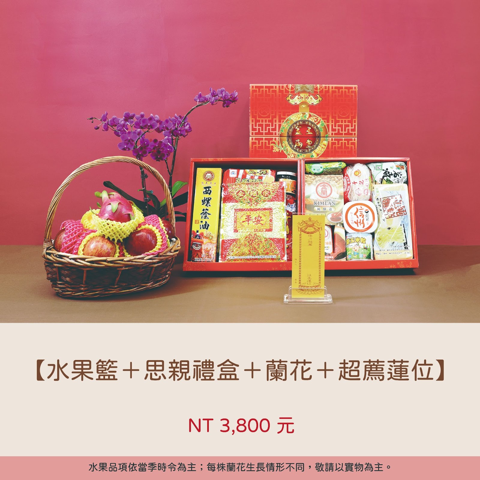 ※ 水果品項依當季時令為主;每株蘭花生長情形不同,敬請以實物為主。